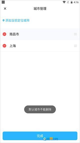 1、默认城市不可以删除的,只能删除备用城市的。