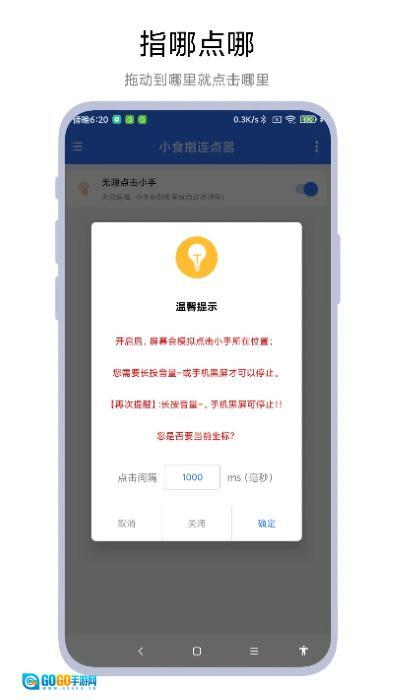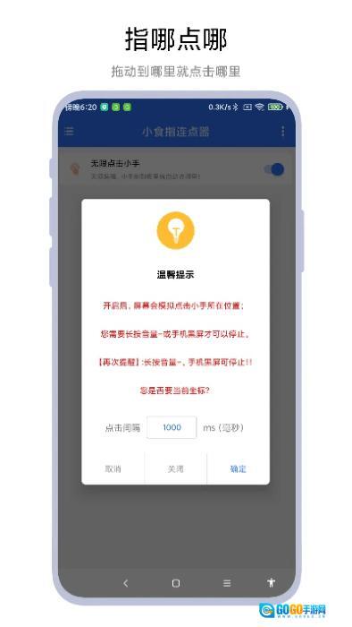 1.小食指连点器具备一键开启功能,用户能够自主设置点击位置、时间间隔与按压时长,以此适配各类场景中的点击需求。