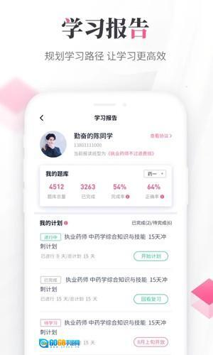 3、学习报告:全方位检测学习情况,计划完整量及题库完成数据