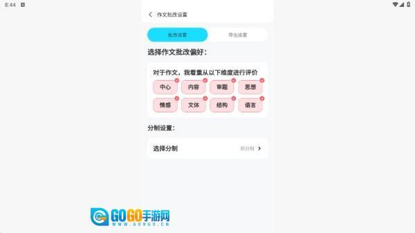 还能在切换导出设置时,完成批改内容的呈现等相关信息的设置。