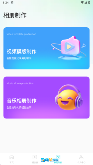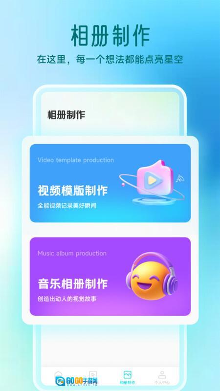4、相册制作页面包含视频模板制作与音乐相册制作两大功能模块。