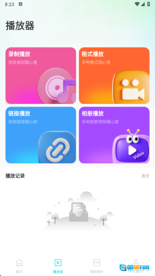 3、播放器页面包含录制播放、格式播放、链接播放与相册播放这几种功能。