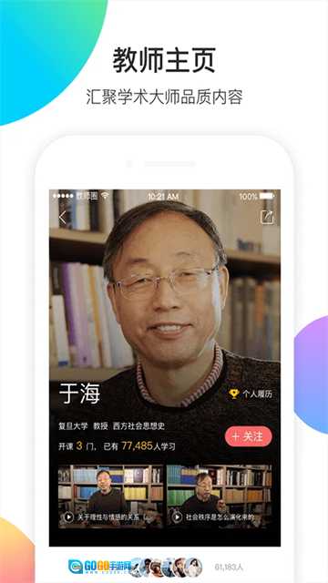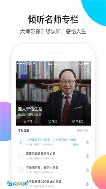 直播:可以观看名师大咖的直播,领略他们的学识。