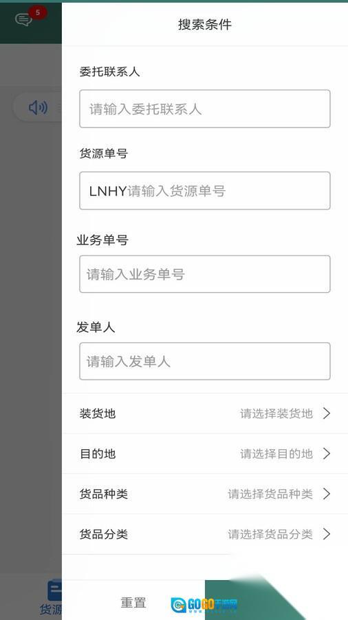 登录后,进入“货源”页面,可依据“货物类型”“运输路线”“起运地”“目的地”等条件对货源进行筛选;