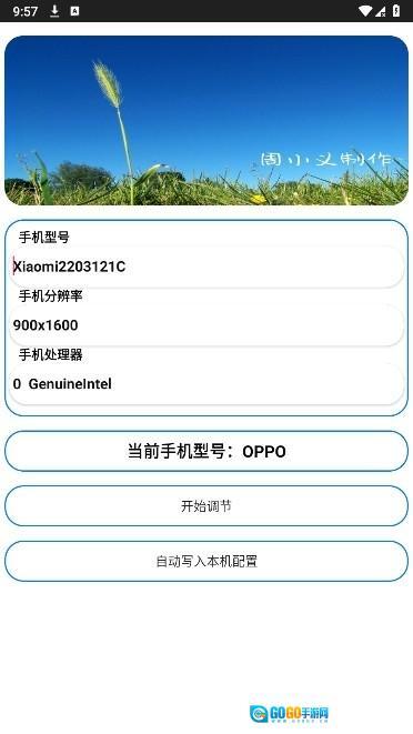 5、在生成器页面选择手机型号等相关设置,随后点击“开始调节”按钮。