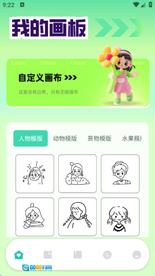 首页将提供各类模板,同时也具备多样化的自定义画布功能。