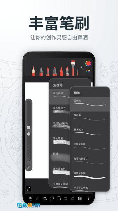 我们提供了丰富多样的绘画工具,包括铅笔、水彩、马克笔等各类常用画笔,并且每一种工具都支持参数调节,能够充分满足不同的创作需求。