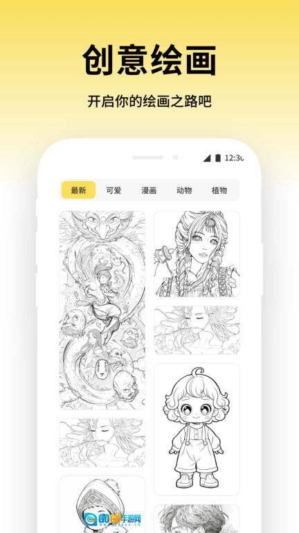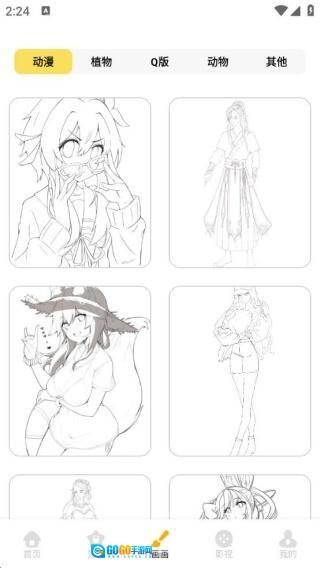 4、点击画画功能,各类绘画模板可供随意挑选,让你的填色操作更加自由灵活,涵盖动漫、植物、Q版等多种分类。
