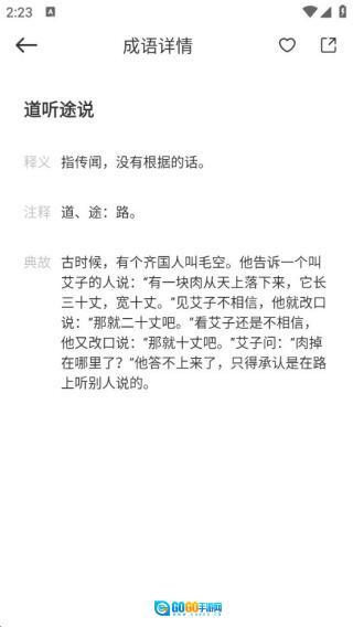 2、点击“今日学习成语”,即可查看该成语的详细内容,包括释义、注释、典故等信息。