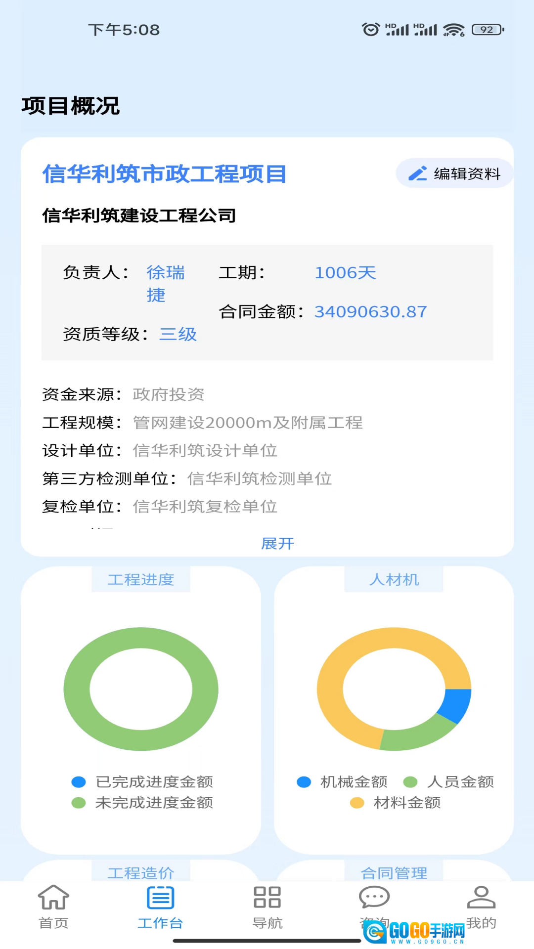 信华利筑是一款专注于工程项目管理的软件,可助力信华利筑市政工程项目等各类工程高效推进,为项目全流程管理提供有力支撑。从项目筹备到竣工结算,它提供全方位管理服务,适配不同规模与类型的工程项目,并对项目概况进行清晰展示,方便相关人员快速掌握项目基本情况。