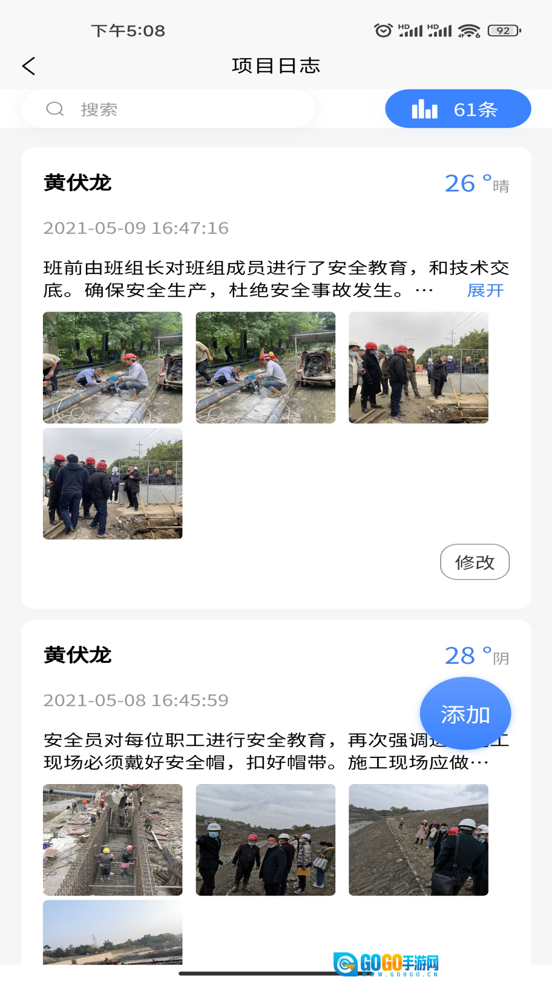 项目日志的记录既全面又灵活,能够详细记载不同日期的安全管理、现场施工等各项情况,并且支持添加多张现场图片,使日志内容更加丰富和直观。