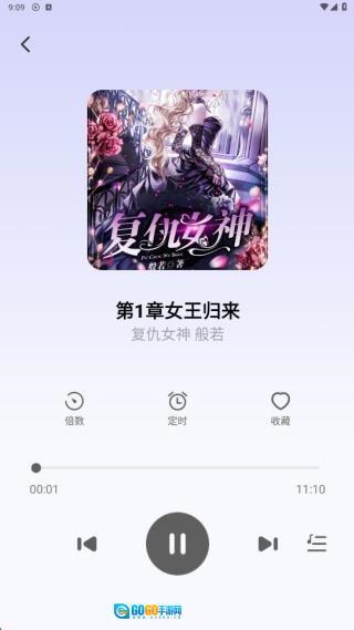 点击播放按钮就能开始听书,此外还能使用定时、倍速调节、收藏等实用功能。