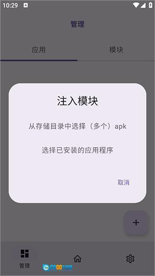 3、将xposed模块下载到本地后,就可以在无为框架的管理界面中点击右下角的“添加”按钮。