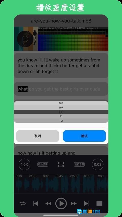 如果感觉听力播放的语速太快,我们也可以把它调慢一些。