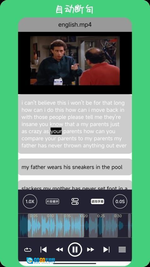 3. 也能点击开启音频转字幕功能,借助字幕来辅助练习。