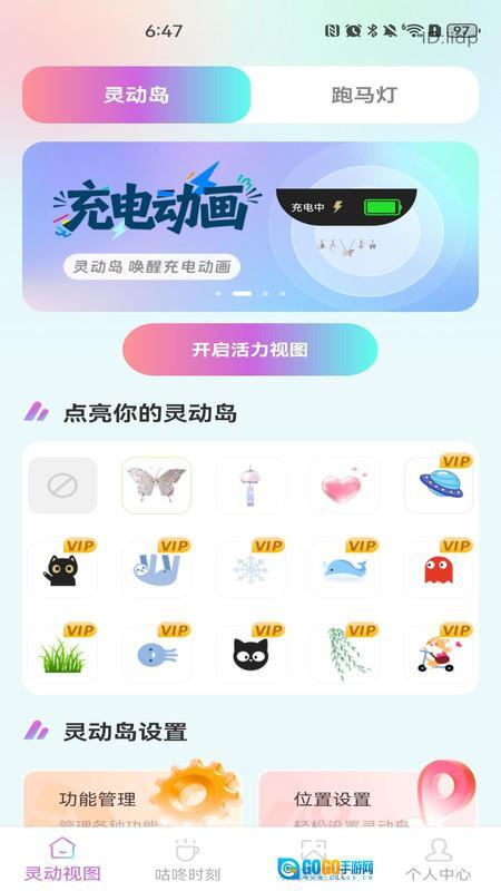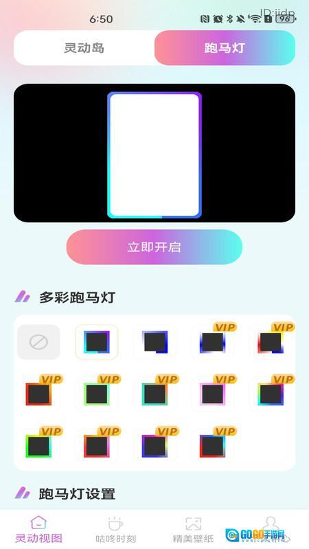 在灵动视图页面,你可以对灵动岛和跑马灯进行相关设置。