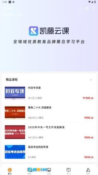 凯藤云课作为一款在线教育软件,汇聚了海量网课资源,用户可随时根据自身学习规划挑选合适课程报名。平台会提前公布课程学习时间,大家无需前往线下,只需自主安排好上课时段即可,同时还能实时查看个人学习进度,了解课程内容的完成情况。