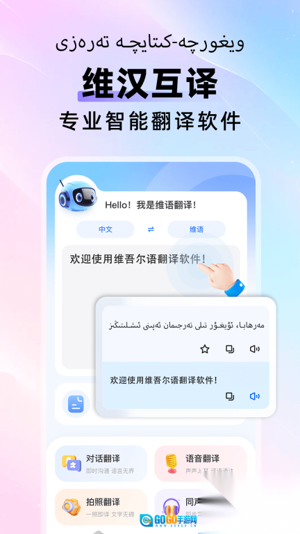 2、适用于学习、工作、旅行、社交等多种场景,不管是和维吾尔族朋友沟通,还是在维吾尔族地区出行,都可以提供便捷的翻译服务。
