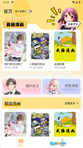 漫画页面不仅设有最新漫画功能,还能让你浏览精选漫画内容。