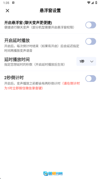 在悬浮窗设置页面里,不仅能够开启悬浮功能,还可以同时设置开启延时播放。