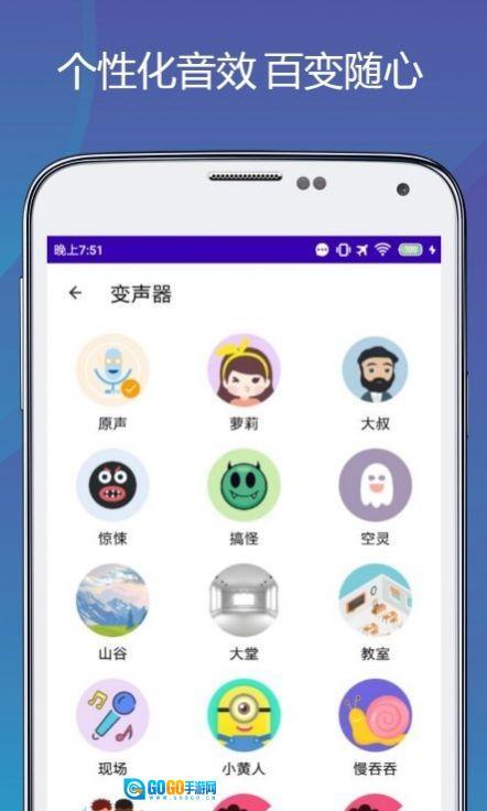 包含可爱萝莉、沉稳大叔、搞怪机器人等多种风格的语音包,在语音通话或录音时能实时切换,让声音呈现不同特色。