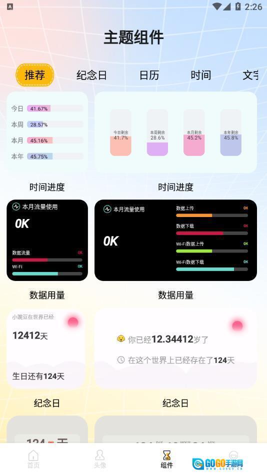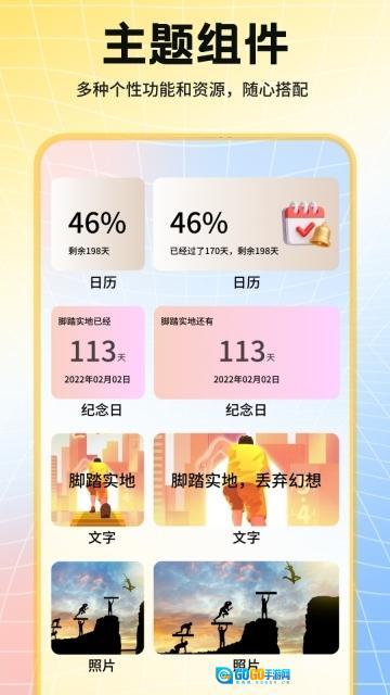 3、主题组件应用:涵盖日历、纪念日等各类主题组件,借助这些组件既能美化手机桌面,又能提升使用的实用性。