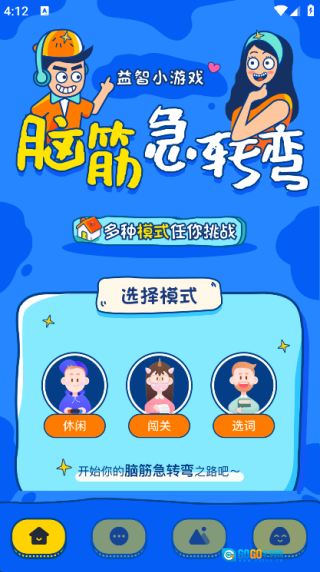 2. 在首页即可看到休闲模式、闯关模式和选词模式;