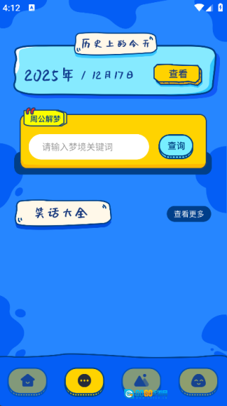 点击页面下方的第二个图标,就能看到周公解梦和笑话大全这两个功能啦。