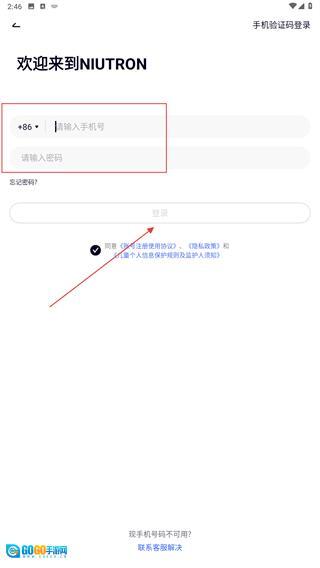 在【欢迎来到NIUTRON】页面,输入手机号码,点击【发送验证码】按钮,获取验证信息并完成验证操作。