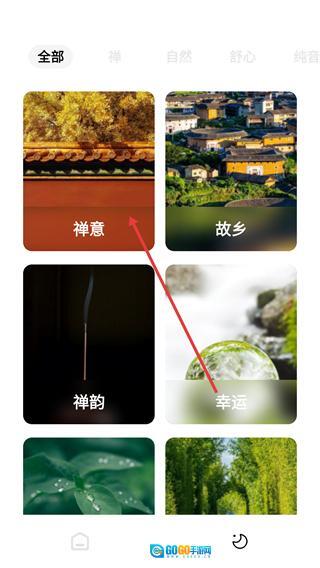 进入分类页面后,点击【禅意】分类卡片,这个分类归属于“禅”相关内容,点击后就能进入对应的主题详情页面。