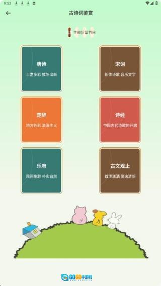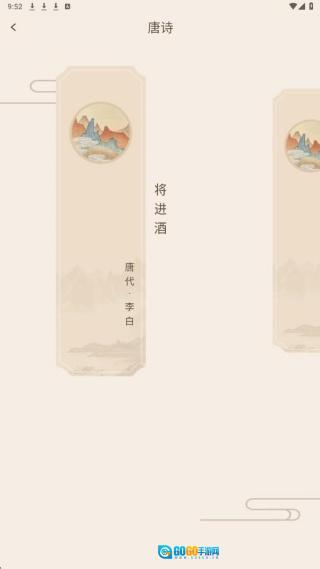 当我们进入诗词鉴赏板块,便能浏览到各个年代的诗词作品。