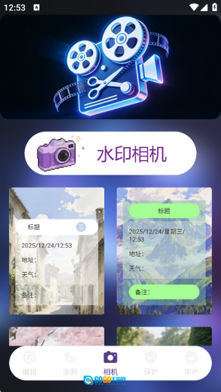 在相机界面里,不仅能使用水印相机功能进行拍摄,还提供了多种水印模板供用户挑选。