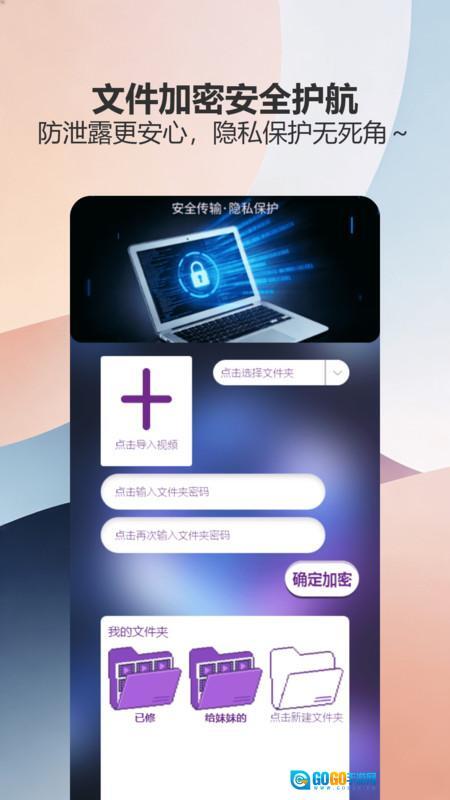 在保护页面里,可在选定的文件夹下导入视频,接着输入该文件夹的密码,确认后完成加密操作。