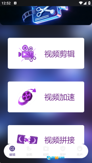 编辑页面配备了视频剪辑、视频加速以及视频拼接等功能。