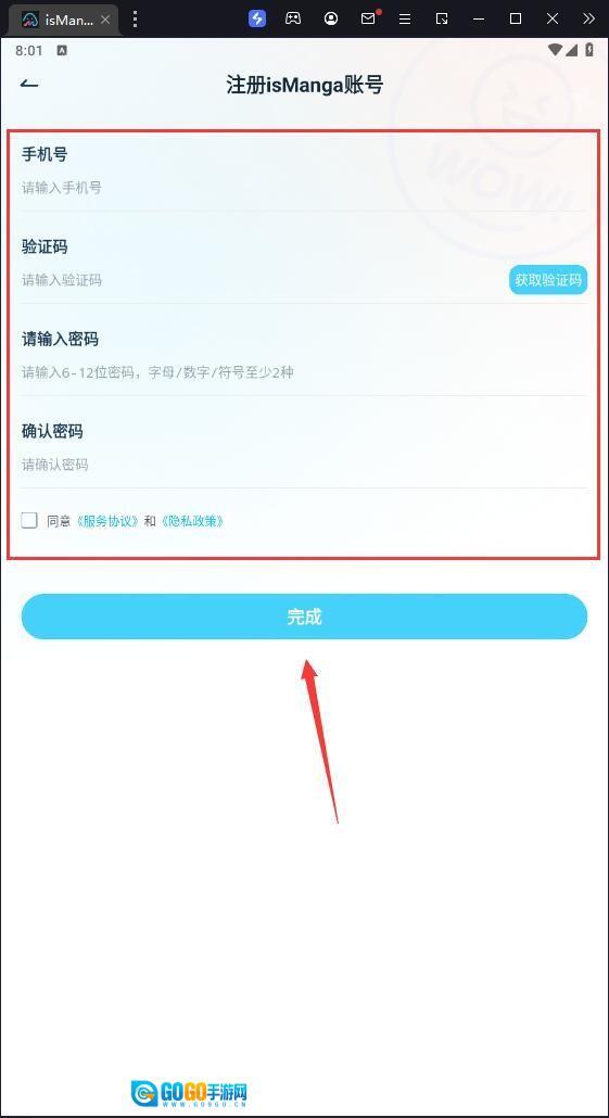 按提示完成信息,点击完成即可完成注册