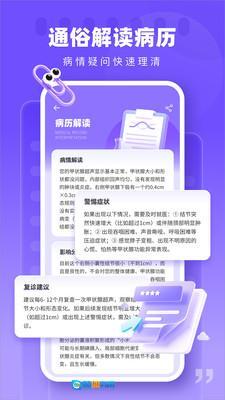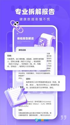 健康体检报告解读是一款能把专业体检报告转化为易懂健康建议的工具。该软件通过解读关键指标与术语,助力用户理解报告内容,还会提供相关健康知识科普,降低非医学专业人士的理解难度,帮助用户初步了解自身健康状况,为后续健康管理和就医决策提供参考依据。