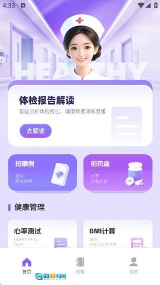 打开App进入首页,就能使用体检报告解读、健康管理等核心功能。