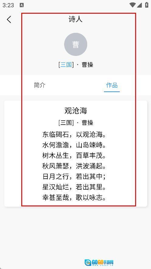 4、进入诗人详情页面后,点击“作品”选项,就能浏览该诗人的作品了。