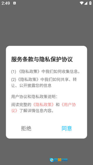 并安装后打开软件,进入时需先同意相关隐私权限。
