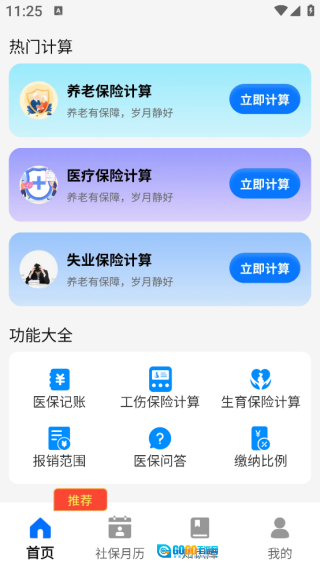 进入首页后,就能看到多样的功能,能够便捷地进行社保、公积金等费用的计算。