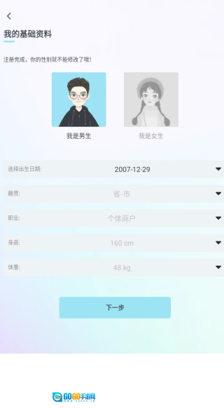 用户需要快速完善个人信息资料,点击下一步。