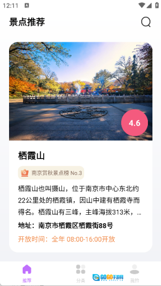 在推荐页面,你既能够获取景点推荐的景区相关信息,也可以对景点进行搜索。