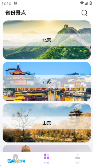 在分类页面里,可依据不同的省份和城市来了解当地的景点信息。