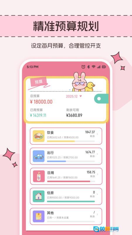 在预算页面,可根据自身情况,预先对个人工资的使用进行规划。