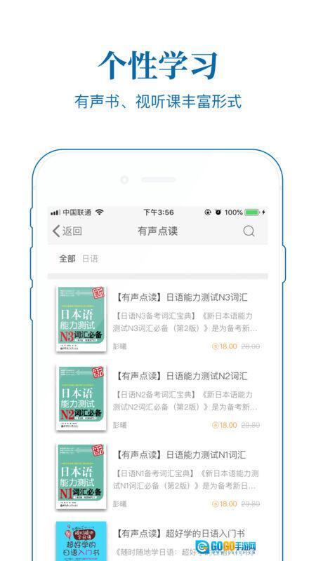 在学日语的页面里挑选目标书籍(例如【有声点读】日语高频3000句),然后点击进入该书的详情页面。