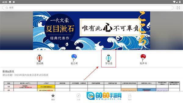在首页找到并点击【学日语】的功能入口,就能进入日语学习资源列表页面,在那里可以浏览各类相关的有声书籍。