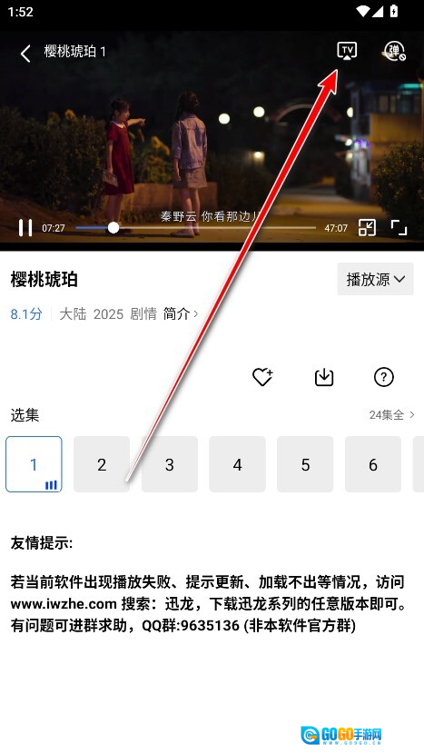 点击tv投屏图标。