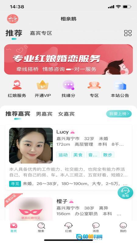 相亲鹅是专为单身人士打造的高端相亲平台,这里汇聚了众多性格优质的异性资源。用户能轻松发起问候、结识彼此并展开互动交流;平台配备专业红娘团队,可依据个人交友需求精准筛选适配对象,还会组织各类线下活动,助力用户逐步拉近与心仪之人的距离。
