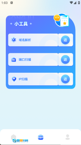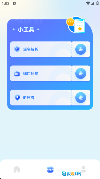 点击页面下方中间位置的图标,就能看到域名解析、端口扫描等功能。