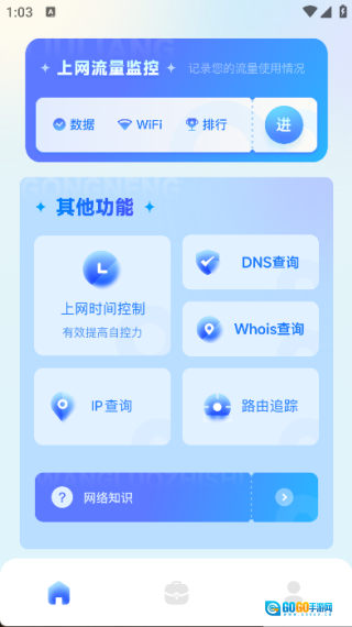 在首页即可看到上网流量监控、IP查询等功能;